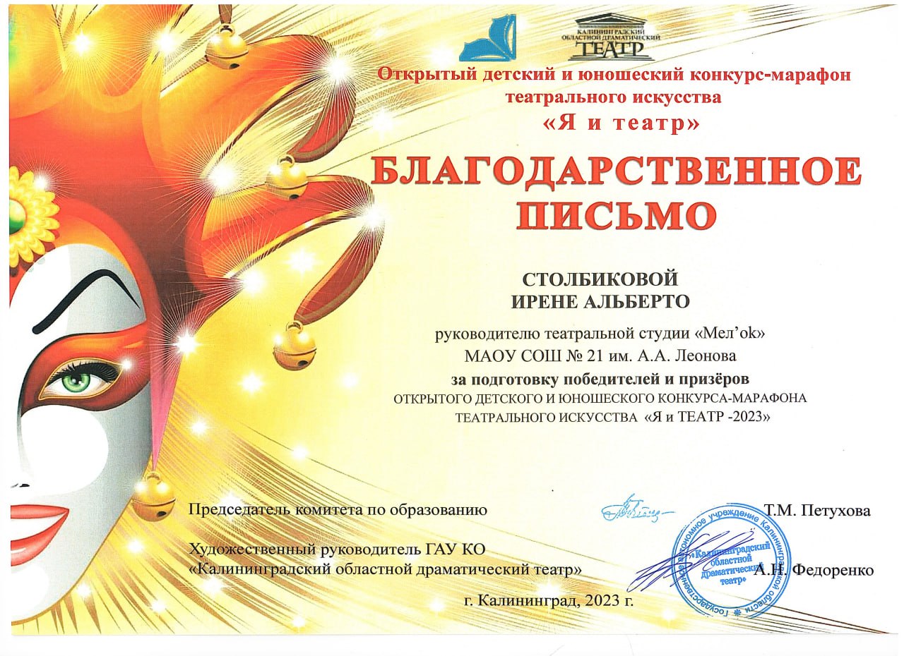 Художественный руководитель театральной студии учитель Столбикова Ирена Альберто.